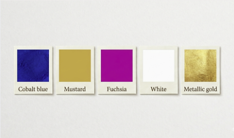 Try cobalt blue, mustard, fuchsia, white, metallic gold.