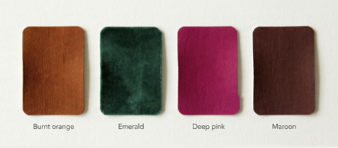 Try rich warm shades like burnt orange, emerald, deep pink, maroon.