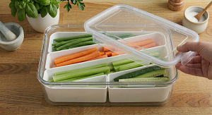 These sturdy, flat-topped containers create a modular system where you can safely layer deli meats, cheeses, or produce.