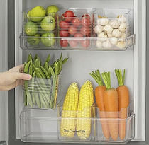 These transparent bins create a clean, cohesive look that makes your fridge feel like a high-end display while keeping inventory management simple.